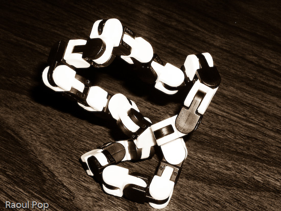 Me neither, until I picked one up at this year’s HIMSS Conference in San Diego. One of the vendors was giving them away, I believe they were CPSI. Anyway, the little things are addictive. They make little clicking noises as you twist and bend them into various shapes. So I thought it’d be fun to make different shapes and post photos of them on my blog.
