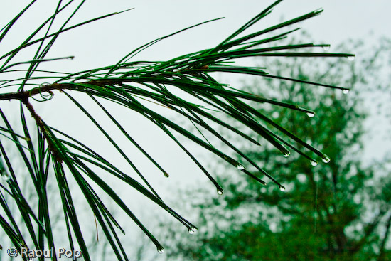 Water drops on pine needles
