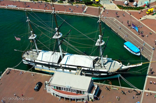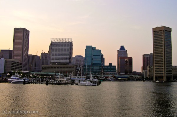 That photo was taken from the top of the Baltimore World Trade Center Building. They say it’s the tallest five-sided building in the world. I didn’t think it was all that impressive. Perhaps I’m just sour because the top floor wasn’t open to the public, so I had to take photographs through their thick, unwashed and tinted windows. Not exactly exciting, and if you see a strange tint in some of the photos, that’s why. I’m sorry about it.