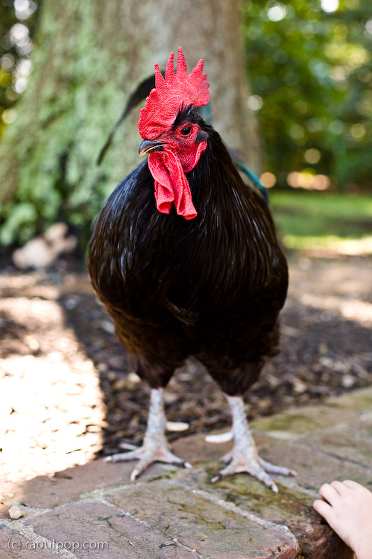 This was a large rooster that roamed around the meadows of Mount Vernon. It was not afraid of people and would even let you pet him. He tried to peck away at my lens, but soon realized there was no food there and moved on.