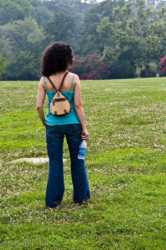 A beautiful young woman (my lovely wife) admires the view at George Washington’s farm.
