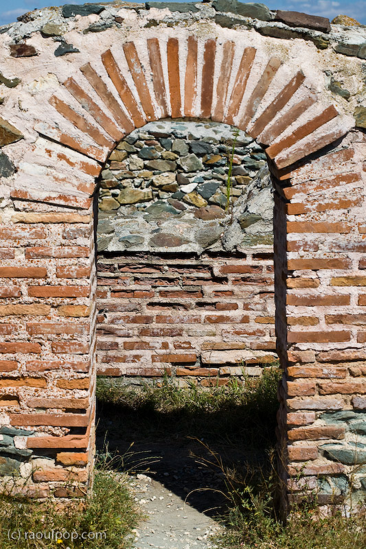 One of the entrances to the Roman baths at Histria. â¨â¨Photo taken among the ruins of Histria, the oldest documented city on Romanian territory. Histria is located on the shore of Lake Sinoe, a salt-water lake with a direct link to the Black Sea, near Constanta, in the region of Dobrogea.