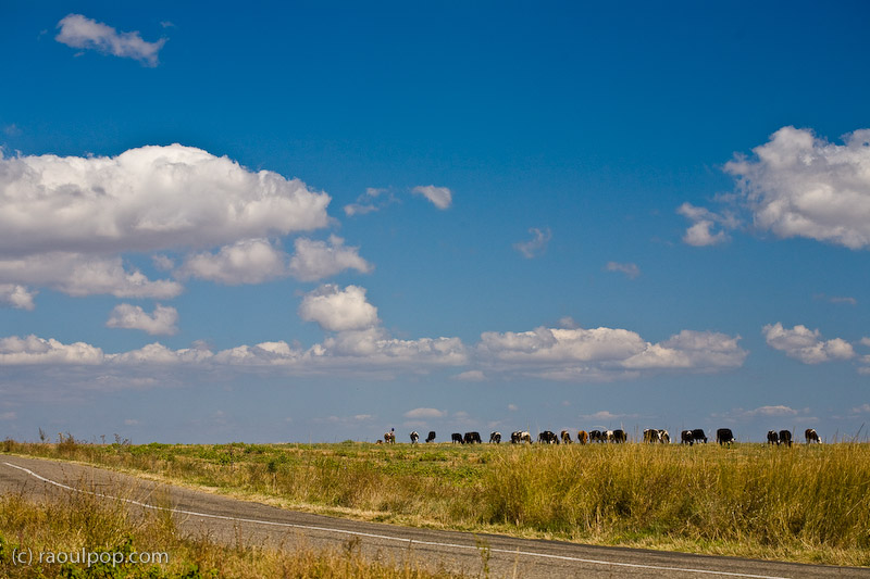 The shepherd of this herd of cows blends in among them, but is clearly visible at full resolution. â¨â¨Photo taken near the ruins of Histria, the oldest documented city on Romanian territory. Histria is located on the shore of Lake Sinoe, a salt-water lake with a direct link to the Black Sea, near Constanta, in the region of Dobrogea.