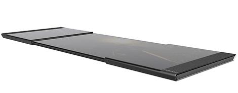 This laptop, designed by Kyle Cherry, has two collapsible side screens, in addition to its main 13″ screen. When fully opened, the aspect ratio is 32:10, and the screen’s diagonal size goes from 13″ to 26″. It’s a boon for watching movies or playing games, as you can see from the photos below. I love how the side screens slide over the main body of the laptop, allowing its owner to carry it easily.