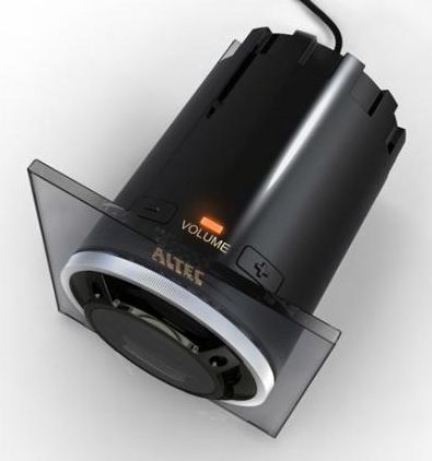 These speakers would go great with an iMac or an all-in-one PC. They have a clear, square face that holds the cylindrical enclosure for the speakers. They connect to your computer through a regular 3.5mm audio cable, and they have an auxiliary input for iPods or other MP3 players as well. The output is 7.5 Watts per channel.