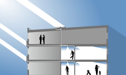 The concept is remarkably simple yet works wonderfully. They have sunlight collectors sitting on the roof or exterior walls of a building. They look like this.