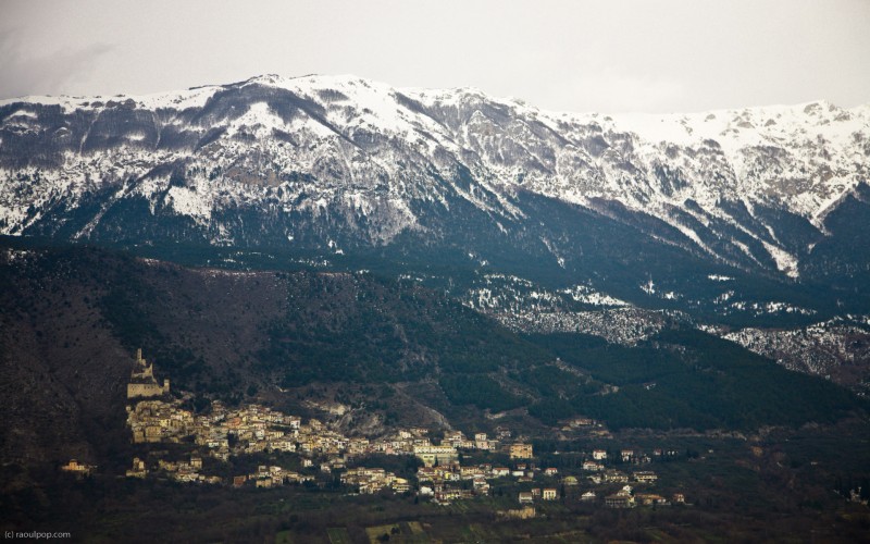 A village perched on a mountainside, somewhere on the road between Grottammare and Rome, Italy.