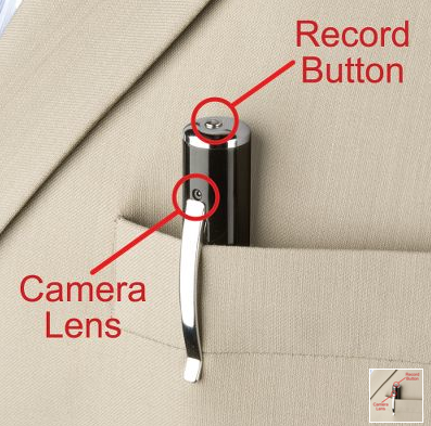 Available for $130 from Hammacher Schlemmer, this nifty pen records up to 2½ hours of color video at a resolution of 352×288 pixels. It stores the video (AVI format) on its 4GB internal memory, and it interfaces with a computer through its built-in USB connector, which can also be used to recharge its lithium battery by plugging it into an outlet via the included adapter. Best of all, it also writes, and the ink sticks are refillable.