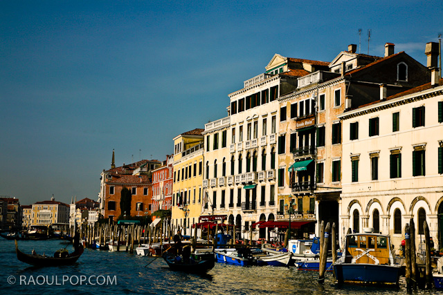 Morning boat ride through the canals of Venice, Italy, on a cold and sunny February morning.