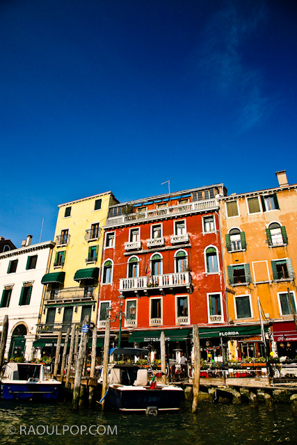 Ristorante Florida. Morning boat ride through the canals of Venice, Italy, on a cold and sunny February morning.
