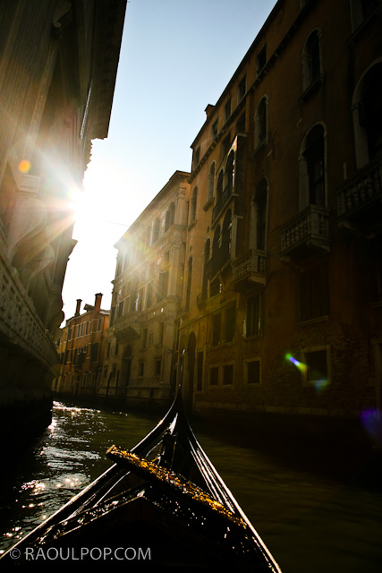 A gondola ride through the canals of Venice, Italy, on a cold and sunny February morning.