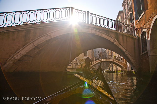 A gondola ride through the canals of Venice, Italy, on a cold and sunny February morning.