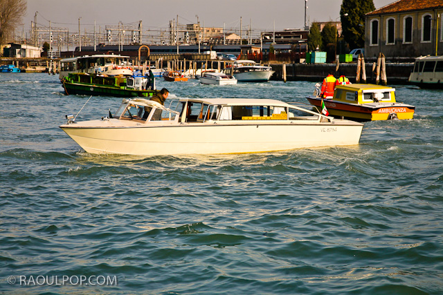 Riding the water taxi into Venice, Italy, on a cold but sunny February morning, at the time of the Venice Carnival.