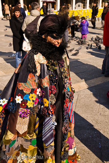 Tourists and people wearing masks and period costumes, in Piazza San Marco, Venice, Italy for the yearly Carnival.