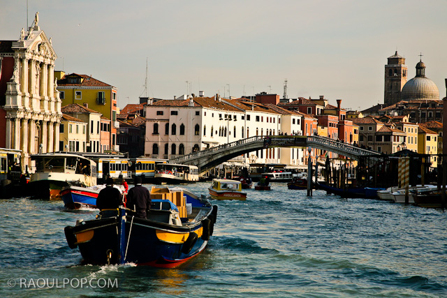 Riding the water taxi into Venice, Italy, on a cold but sunny February morning, at the time of the Venice Carnival.
