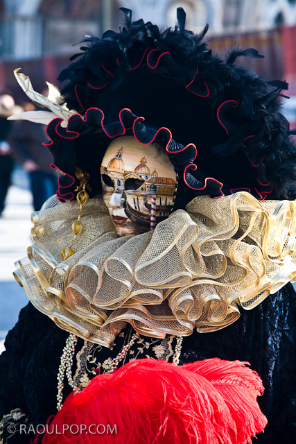 Tourists and people wearing masks and period costumes, in Piazza San Marco, Venice, Italy for the yearly Carnival.