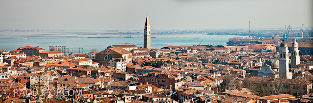 A panoramic view of the city of Venice, Italy, from the Campanile of the Piazza di San Marco. Total image size is about 20 megapixels.