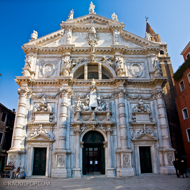 Church facade, Venice, Italy.