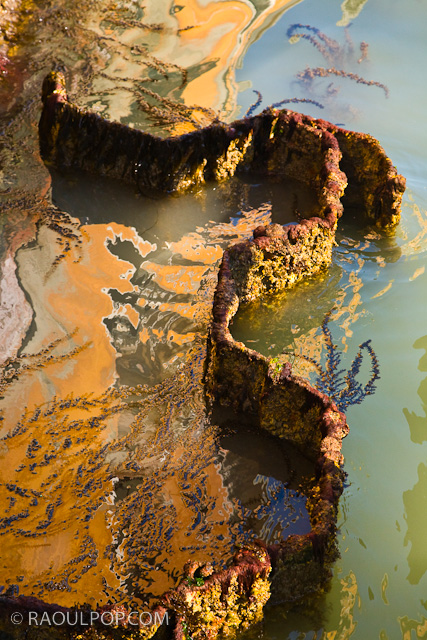 An old, rusty piling foundation at one of the docks in Venice, Italy.