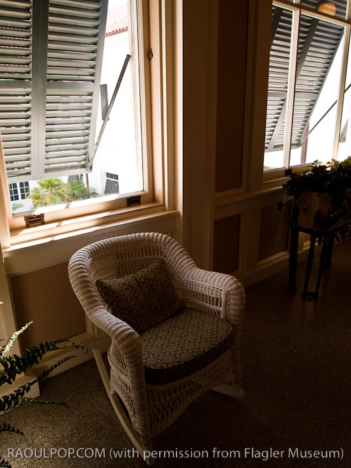 Wicker rocking chair by window, Flagler Museum, West Palm Beach, Florida, USA.