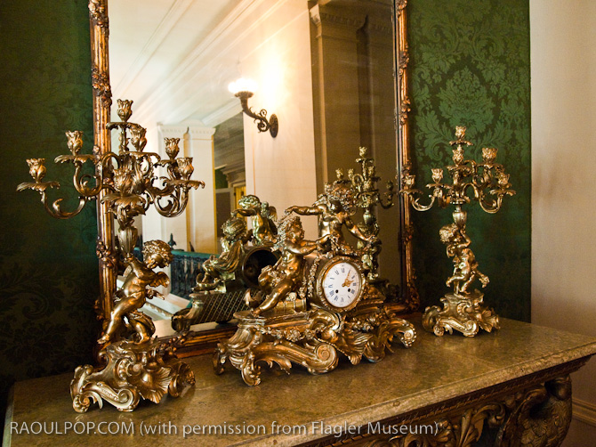 Ornate clock and candelabra, Flagler Museum, West Palm Beach, Florida, USA.