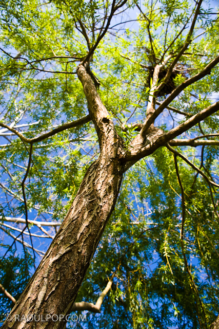 Looking upward from underneath a tree, spring, Grosvenor Park, North Bethesda, Maryland, USA.