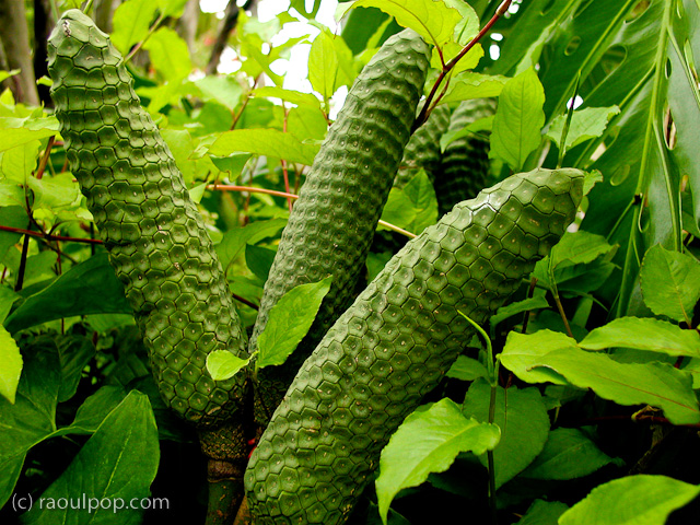Strange-looking tropical fruits of some sort, Butterfly World, Coconut Creek, FL, USA.