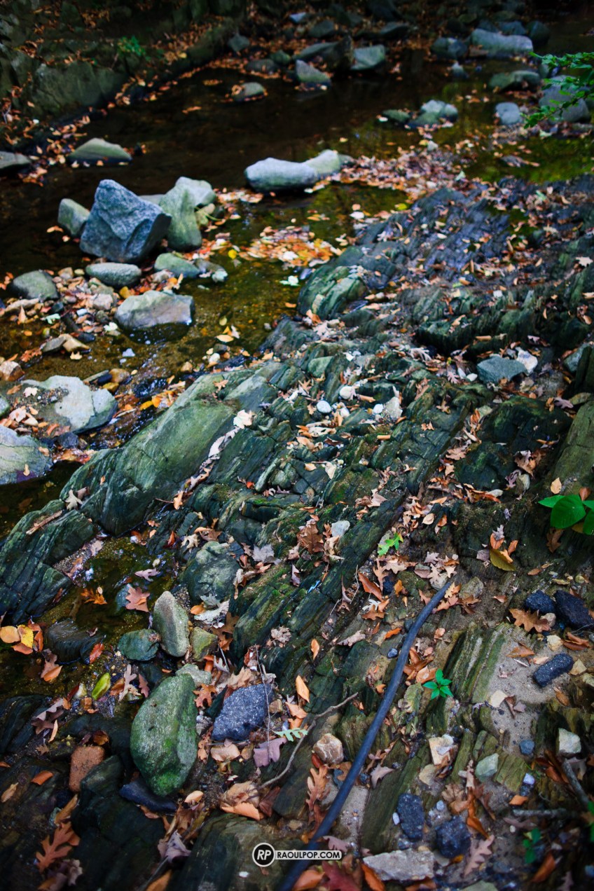 Quiet scene, brook, rocks, fallen leaves.