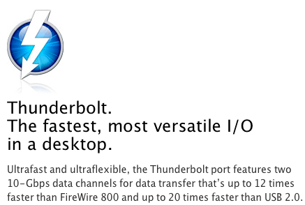 If Thunderbolt is “the fastest, most versatile I/O in a desktop”, why is it MIA on the Mac Pro? Shouldn’t it be on Apple’s most powerful desktop? If it’s got 10 Gbps data channels, and it’s tens of times faster than FW800 or USB 2.0, why isn’t it on the Mac Pro?