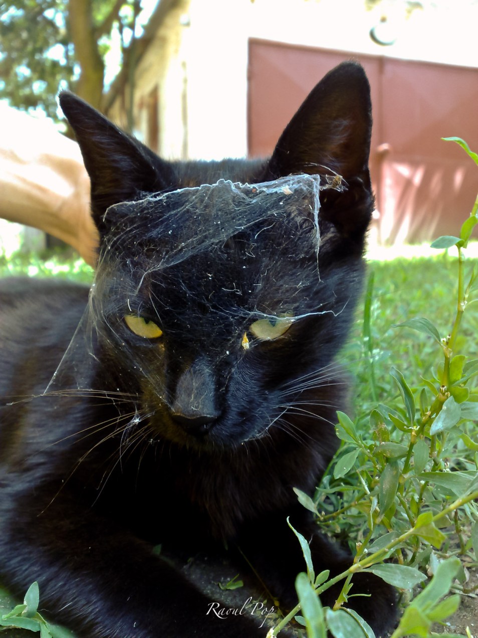 Zuzu with a spiderweb on her head. Let’s call it the bride’s veil.