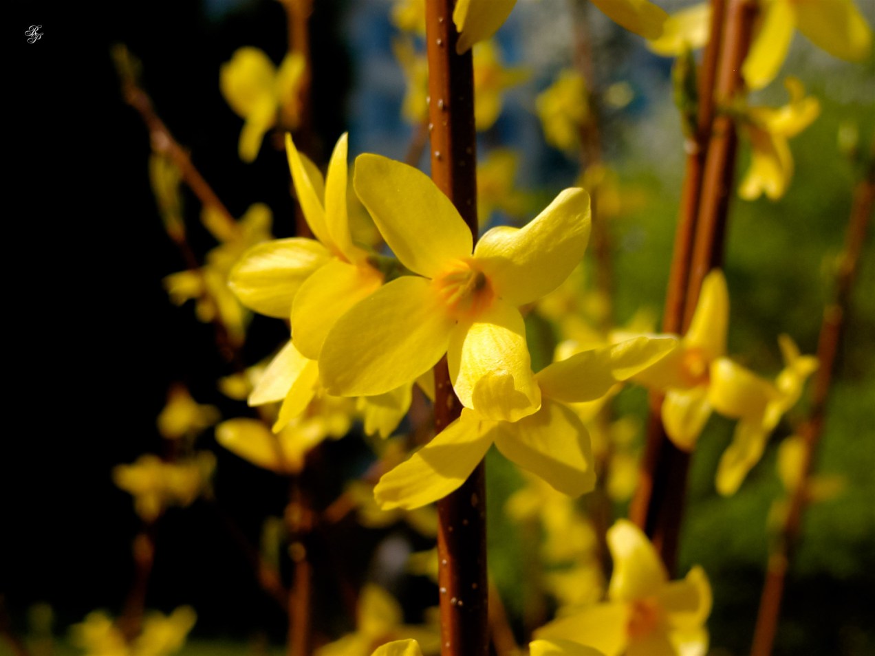 Yellow flowers in bloom, springtime, Grosvenor, North Bethesda, MD, USA.