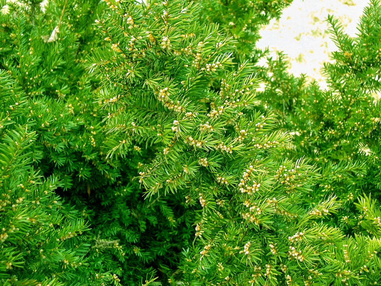 Bright green evergreen branches.