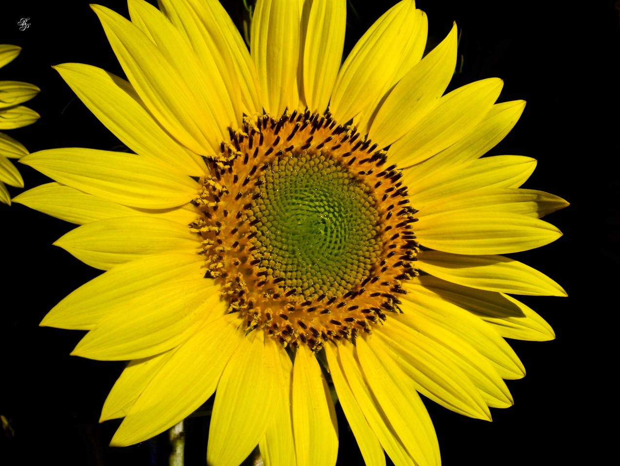 Still life, bright, golden-hued sunflowers in a glass vase. Grosvenor, North Bethesda, MD, USA.