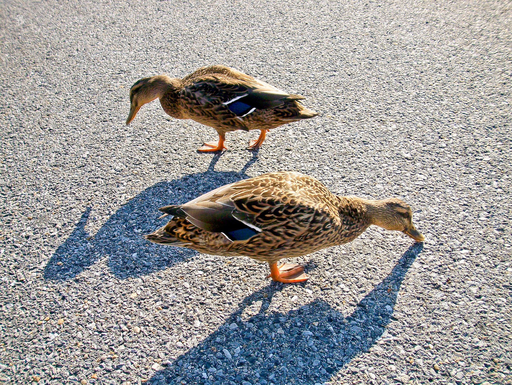 In the parking lot, we met two friendly ducks, whom we filmed.