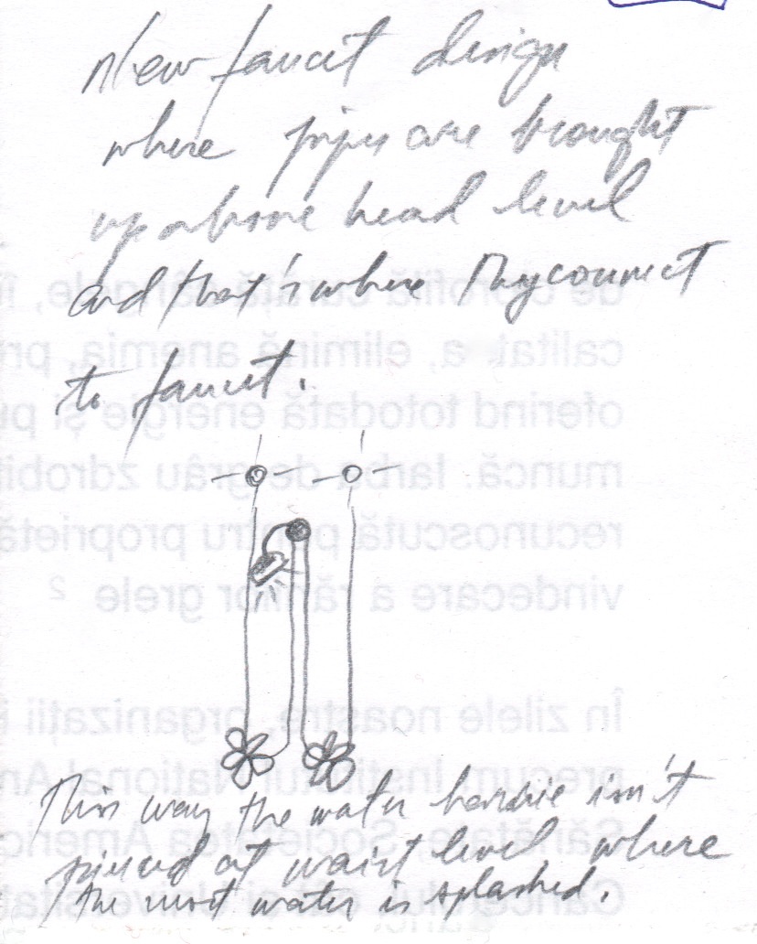 Behold my new faucet design, which does away with this problem. I scribbled it down on a piece of paper when I got the idea.