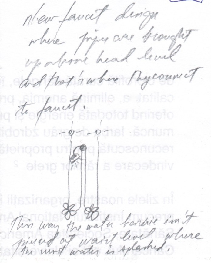 I had an idea recently about a new faucet design. (If you’ve been reading my website for some time, then you may remember I post my ideas here — when I remember to write them down and don’t forget them.)