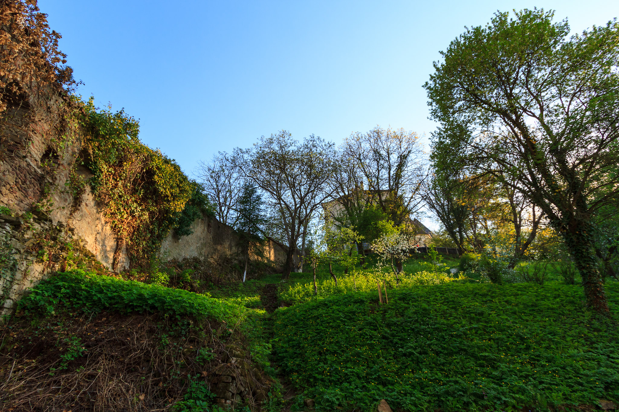 Afterward, we went up into the fortress to see if we could see some spots we hadn’t yet seen, and after walking up a well-known side street, were rewarded with the open gates of the rectory. We went right inside the courtyard and had a marvelous walk up into the gardens adjacent to the fortified walls.