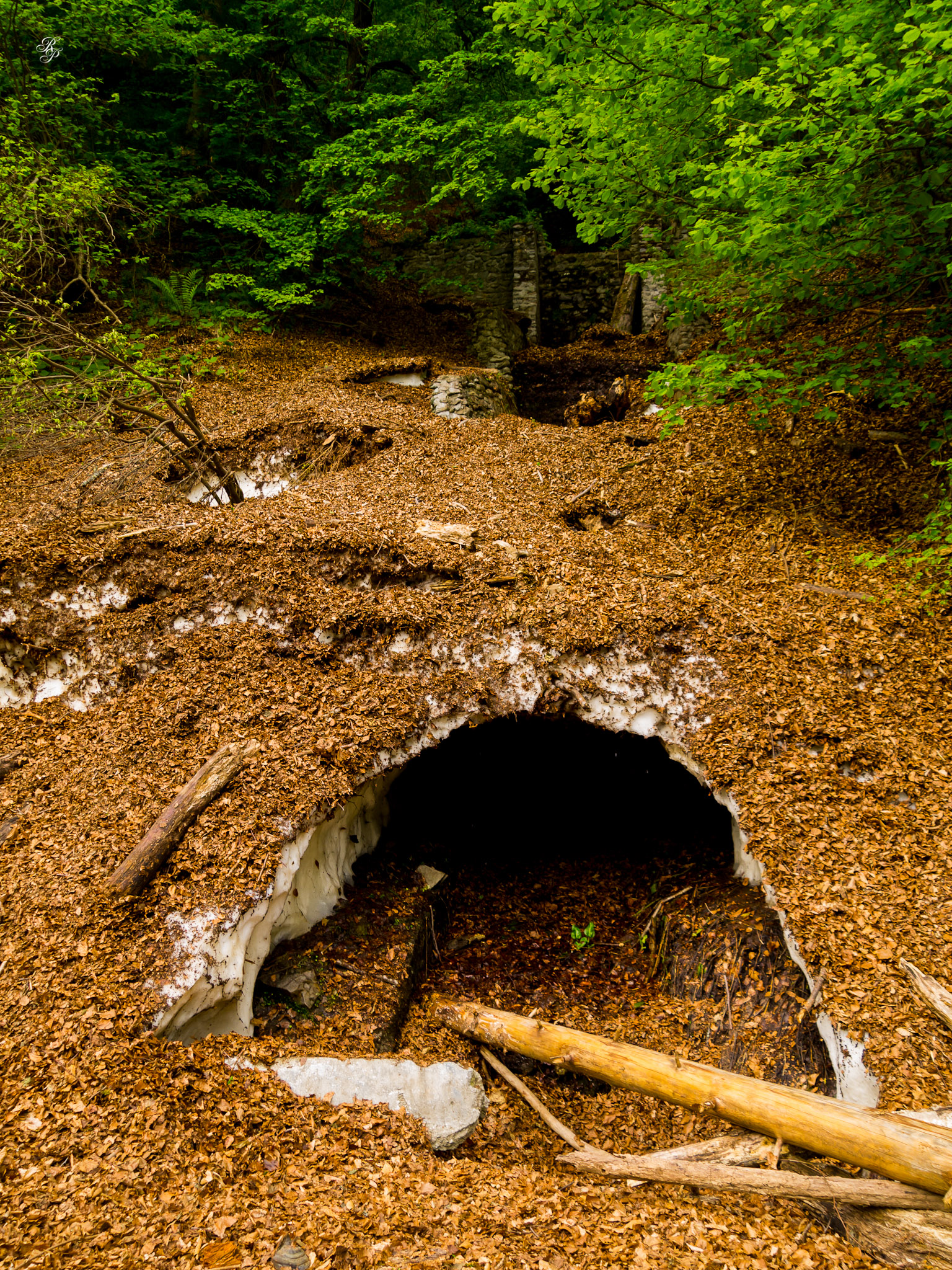 On the way, we found a grotto formed of ice and snow at the foot of a forest, right over the bed of a brook. The snow had been insulated by a thick leaf cover, and that’s why it had kept so far, but in 75-degree (Fahrenheit) late spring weather, I doubt it will keep for much longer. It was a remarkable sight for the middle of May, particularly since we weren’t at a high altitude (about 400-500 meters).