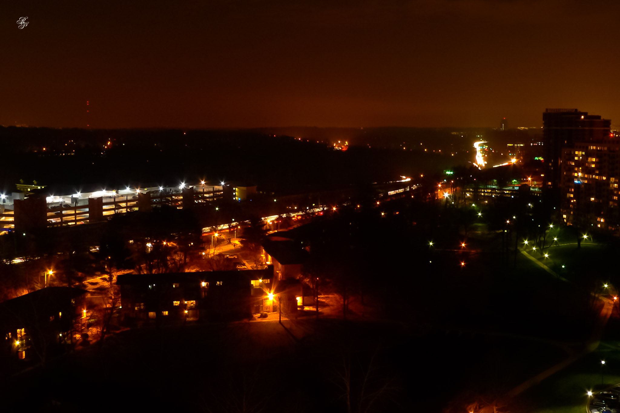 Grosvenor Park and Rockville Pike, looking toward Bethesda, at night. North Bethesda, MD, USA.