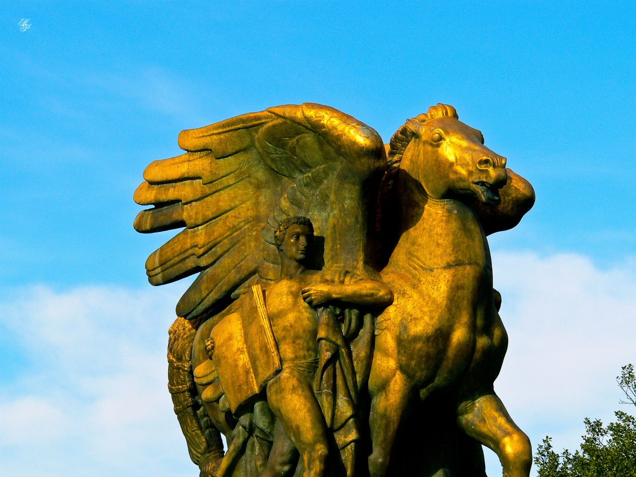 Statues on the bridge over the Potomac, behind the Lincoln Monument, downtown Washington, DC, USA.