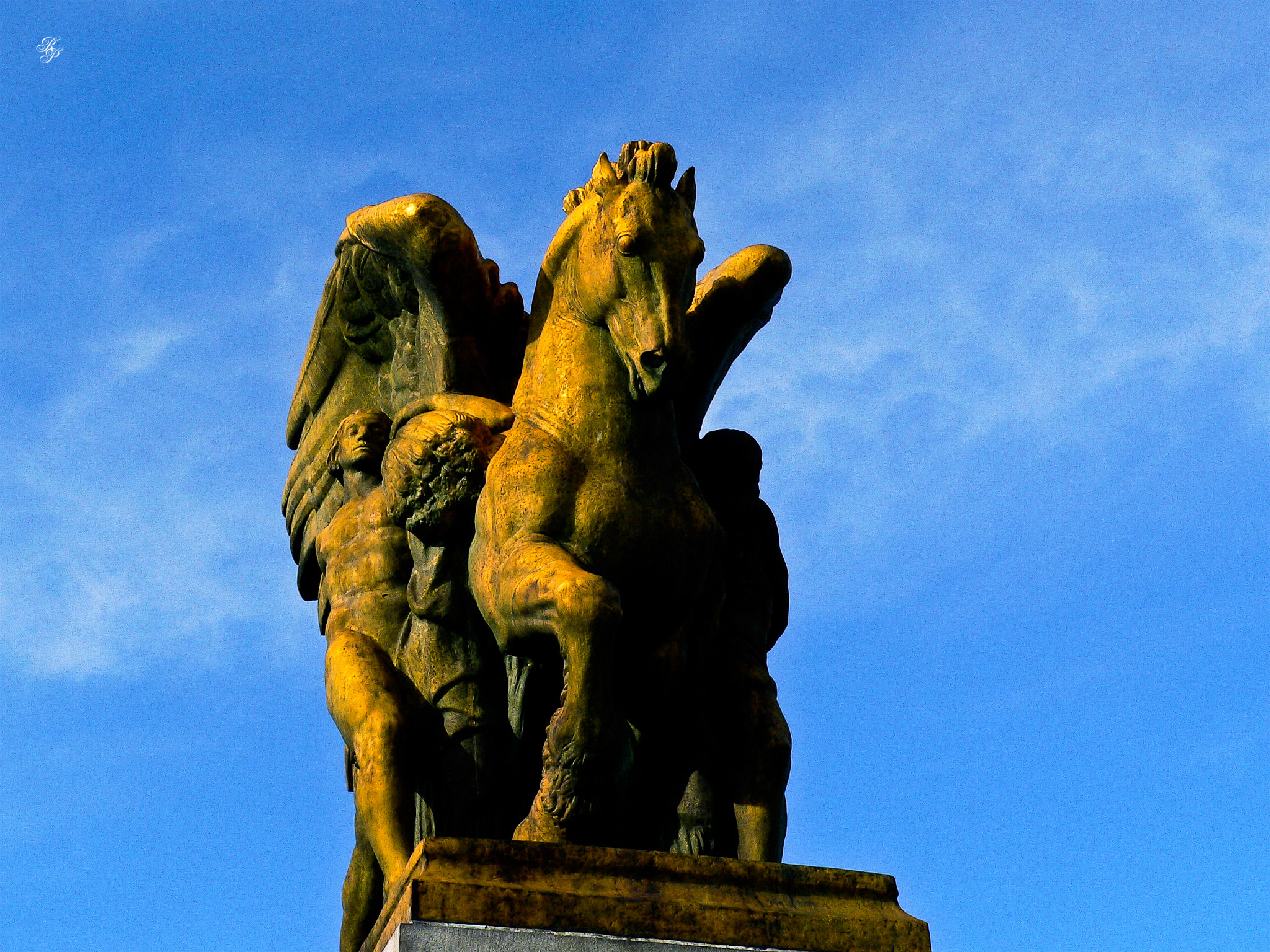 Statues on the bridge over the Potomac, behind the Lincoln Monument, downtown Washington, DC, USA.