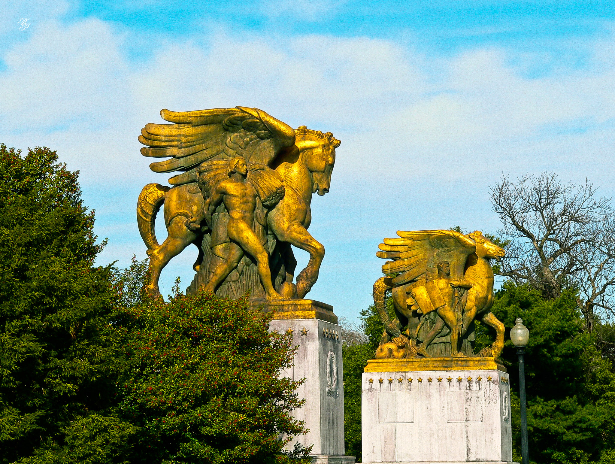 Statues on the bridge over the Potomac, behind the Lincoln Monument, downtown Washington, DC, USA.