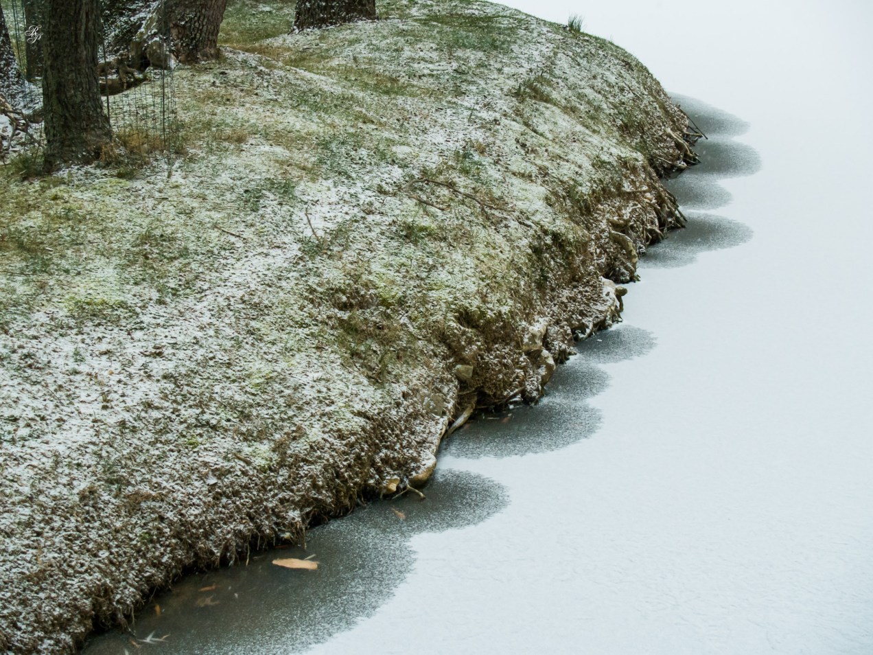 Frozen lake shore, Grosvenor Park.