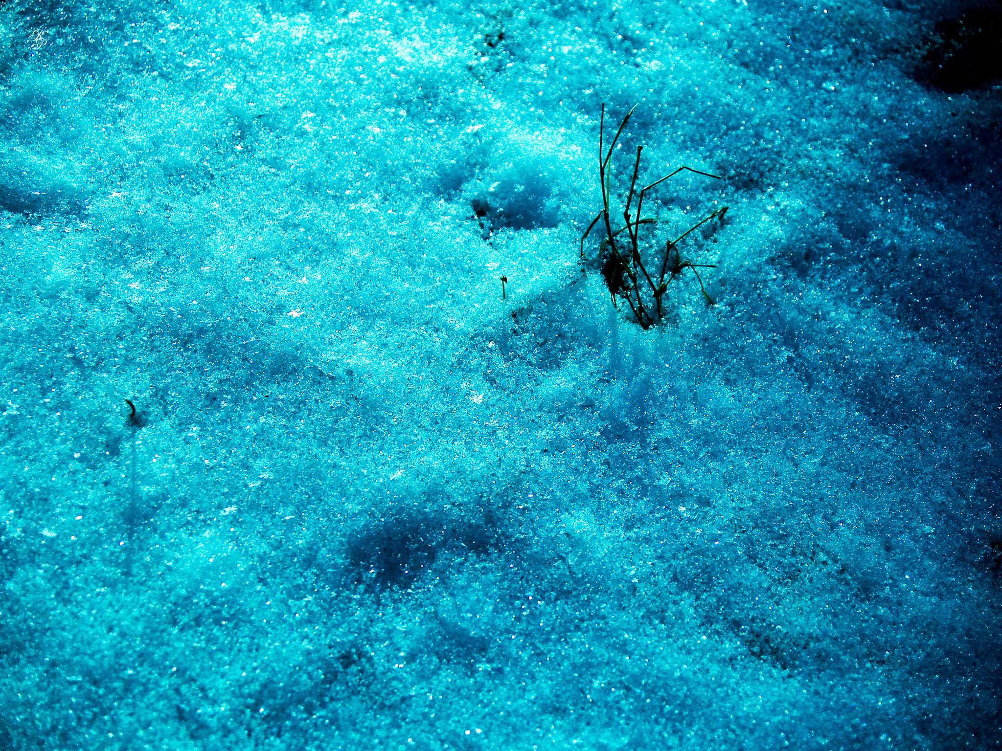 Leaves of grass peering through freshly fallen snow. Cabin John Regional Park, MD, USA.