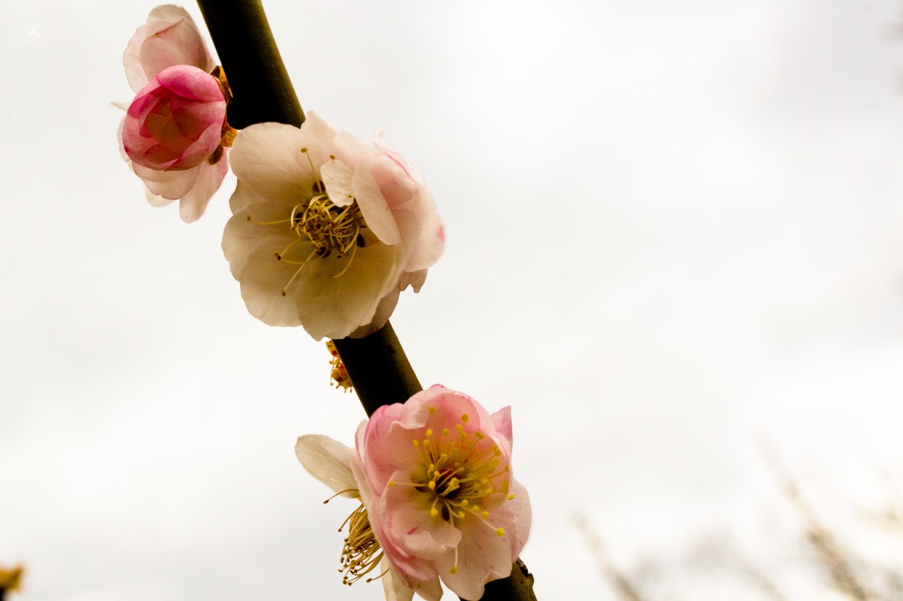 Flowers in bloom on a branch, late winter, National Arboretum, Washington, DC, USA.