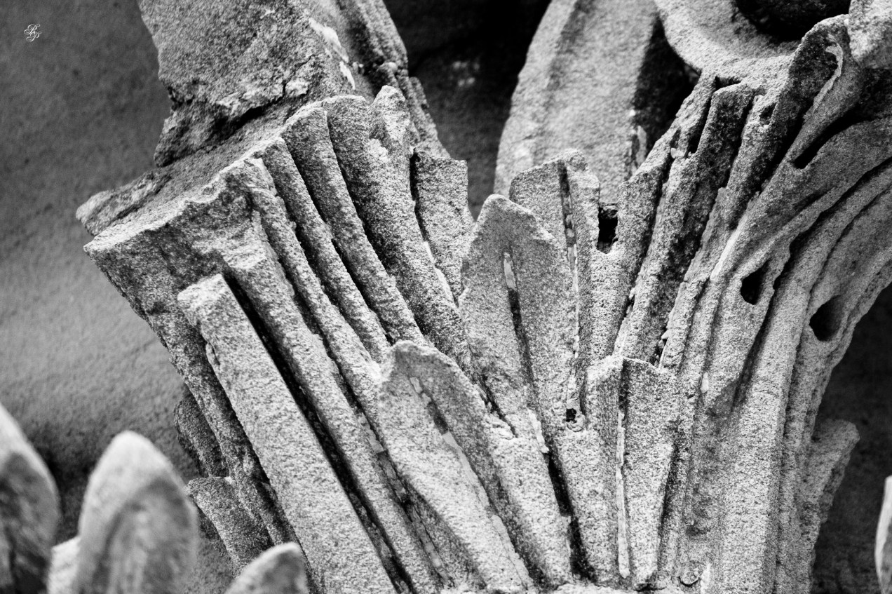 The delicate stone reliefs at the top of a Corinthian column. National Arboretum, Washington, DC, USA.