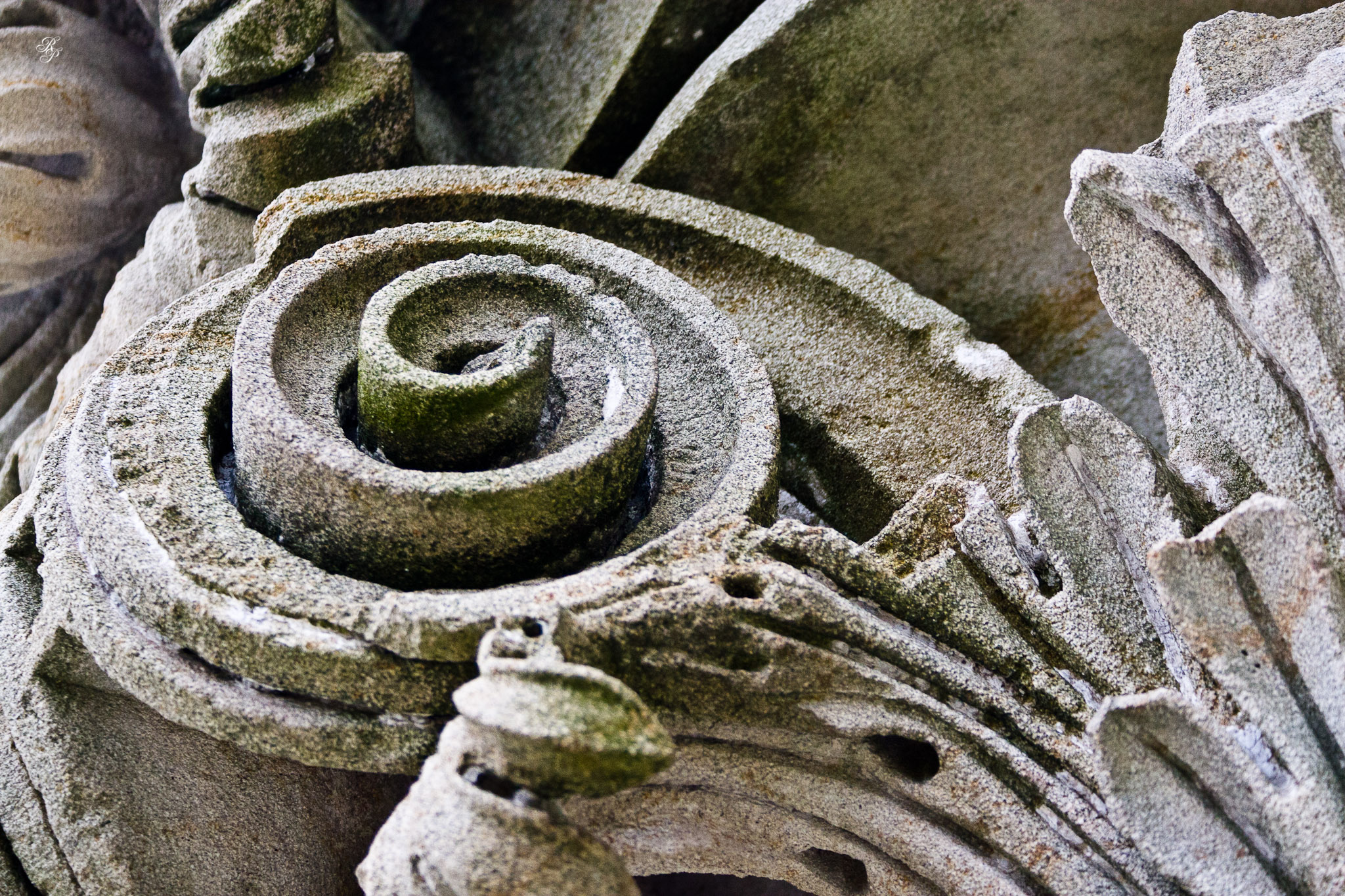 The delicate stone reliefs at the top of a Corinthian column. National Arboretum, Washington, DC, USA.