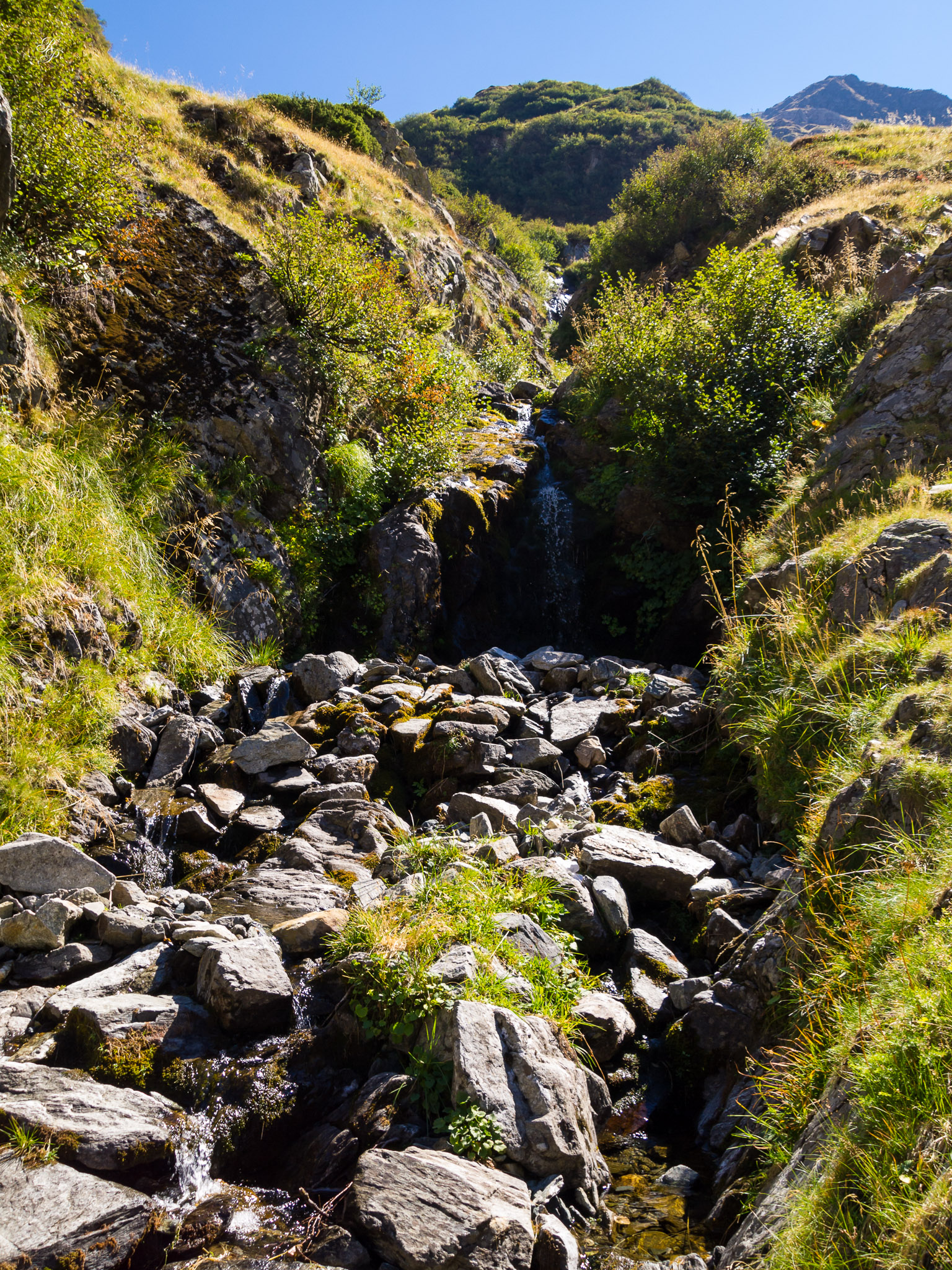A spring pours forth from a cliffside, Southern Carpathian Mountains.