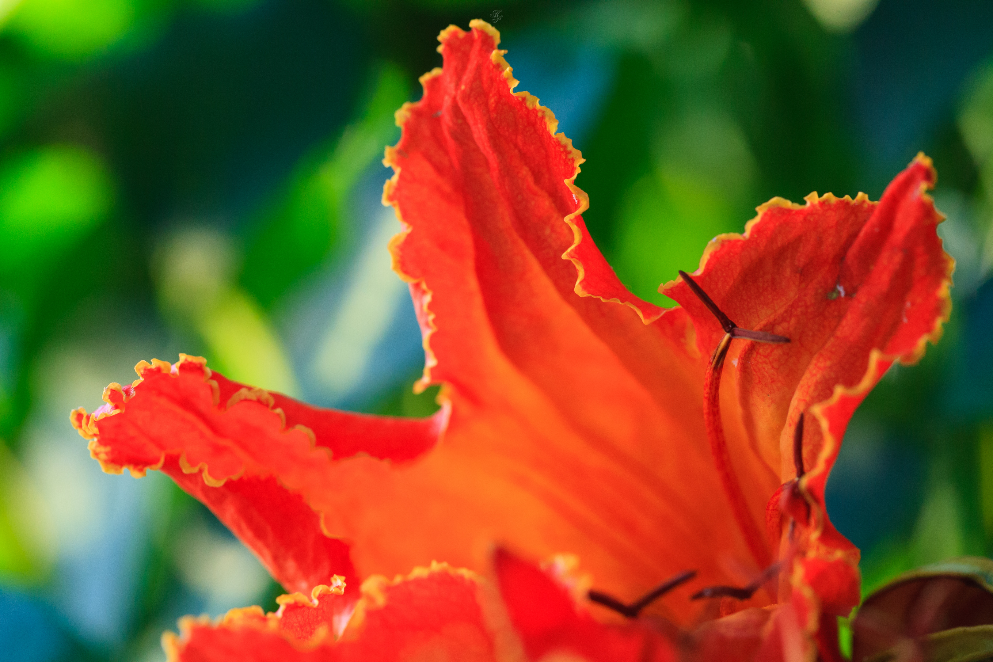 The frilly, bright orange petal of an azalea.