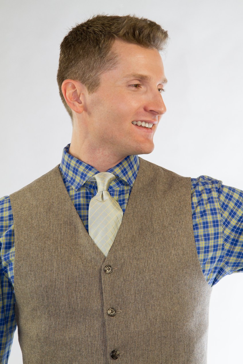 The thicker wool vest is the giveaway here. The shirt and tie can of course also be worn during warmer weather.